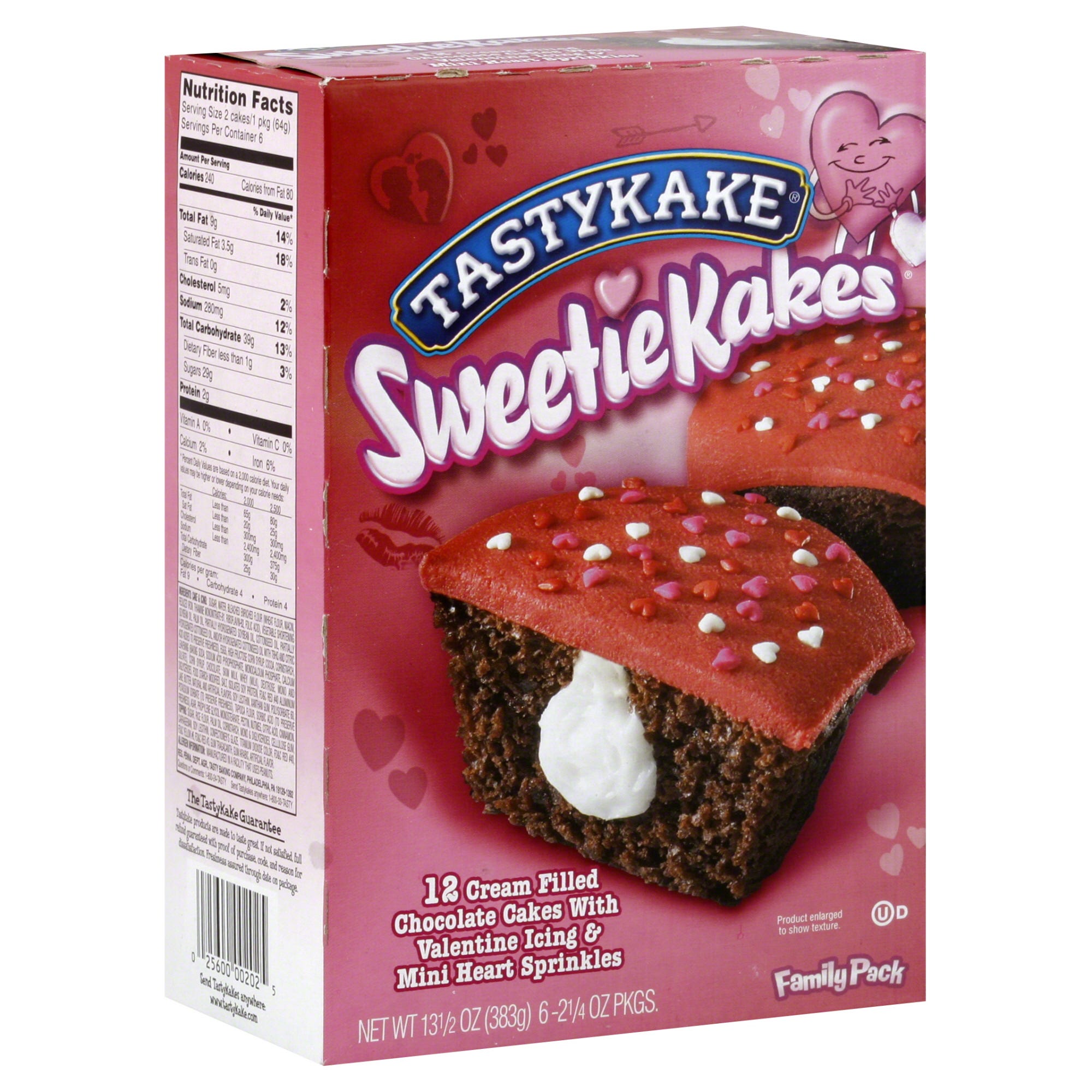 Iced creme filled chocolate cakes with sprinkles. 6 packs of 2. Baked deliciously since 1914. For your sweetie! From the flowers family of bakers. Nobody bakes a cake as tasty as a Tastykake! www.tastykake.com. Visit us on Facebook. Instagram.