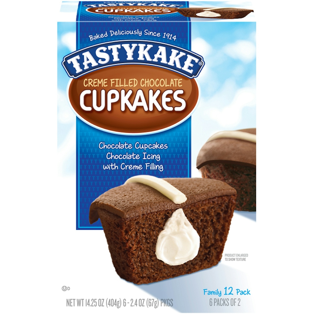 With moist chocolate cake, fluffy creme filling, and rich chocolate icing, Tastykake® Creme Filled Chocolate Cupkakes are a chocolate lover's dream. Pack these delicious cupcakes into a lunchbox or toss into a bag for the easiest and most delicious on-the-go chocolaty treat. Whether you prefer them for a dessert, an afternoon pick-me-up or a late night treat, you'll want to keep these family-approved snack cakes stocked in your pantry at all times. Tastykake has baked iconic treats for over 100 years, creating tasty cakes, muffins, donuts, pastries, pies and more. With so many delicious and unique treats to choose from and so many happy snack-lovers, why would you ever choose another brand? Whether it is a quick bite on-the-go or a reward after a long day, at Tastykake, we take snacking seriously, and our products are here to satisfy. Choose Tastykake and accept no substitutes™.
