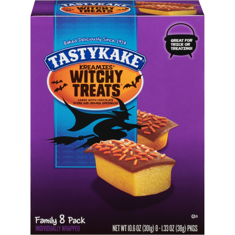 Cakes with chocolate icing and orange sprinkles. Baked deliciously since 1914. Great for trick or treating! From the flowers family of bakers. www.tastykake.com Visit us on Facebook, Instagram.
