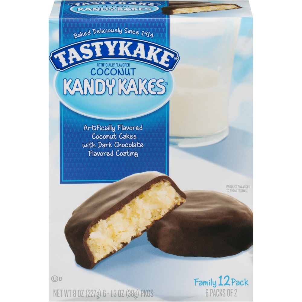 12 dark chocolate coated coconut cakes. Baked fresh! Great for trick or treating! www.tastykake.com.