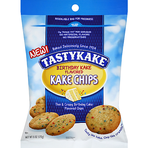 Thin & crispy birthday cake flavored chips. 0 g trans fat per serving. No artificial flavors. No preservatives. Tasty like kake, chip-like crunch! Baked deliciously since 1914. New! Resealable bag for freshness.