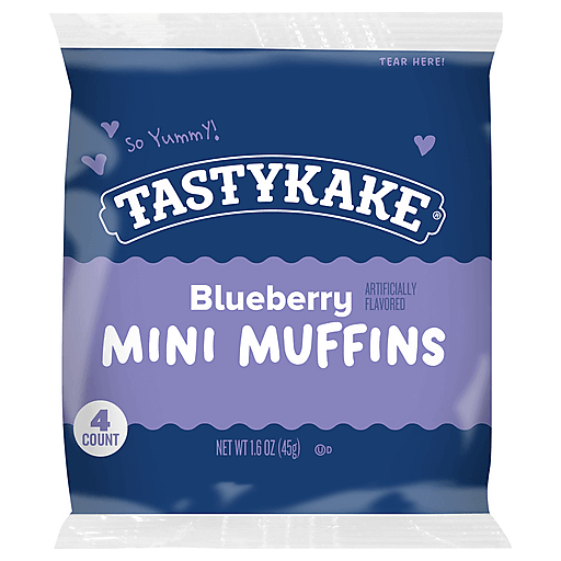Tastykake Mini Muffins are here to delight your tastebuds and satisfy your snacking needs. These blueberry flavored muffins are free from high fructose corn syrup, artificial colors and partially hydrogenated oils (PHOs). Plus, each cute mini bite is made with real fruit. Tuck these portable packs into lunch boxes, keep a pouch in the car, or even toss a pack into your handbag for on-the-go snacking. Tastykake Mini Muffins are yummy at any age. Tastykake has baked iconic treats for over 100 years, creating tasty cakes, muffins, donuts, pastries, pies and more. With so many delicious and unique treats to choose from and so many happy snack-lovers, why would you ever choose another brand? Whether it is a quick bite on-the-go or a reward after a long day, at Tastykake, we take snacking seriously, and our products are here to satisfy. Choose Tastykake and accept no substitutes™.