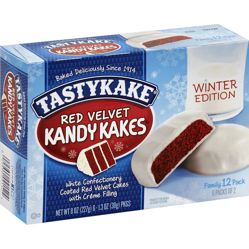 - The product category for Tastykake, Red Velvet Kandy Kakes, White Confectionery Coated Red Velvet Cakes with Creme Filling is Snack Cakes.