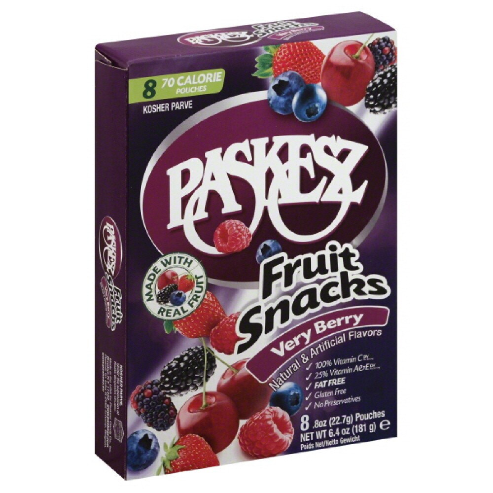 - The product category for Paskesz, Fruit Snacks, Very Berry, Very Berry is Fruit Snacks.