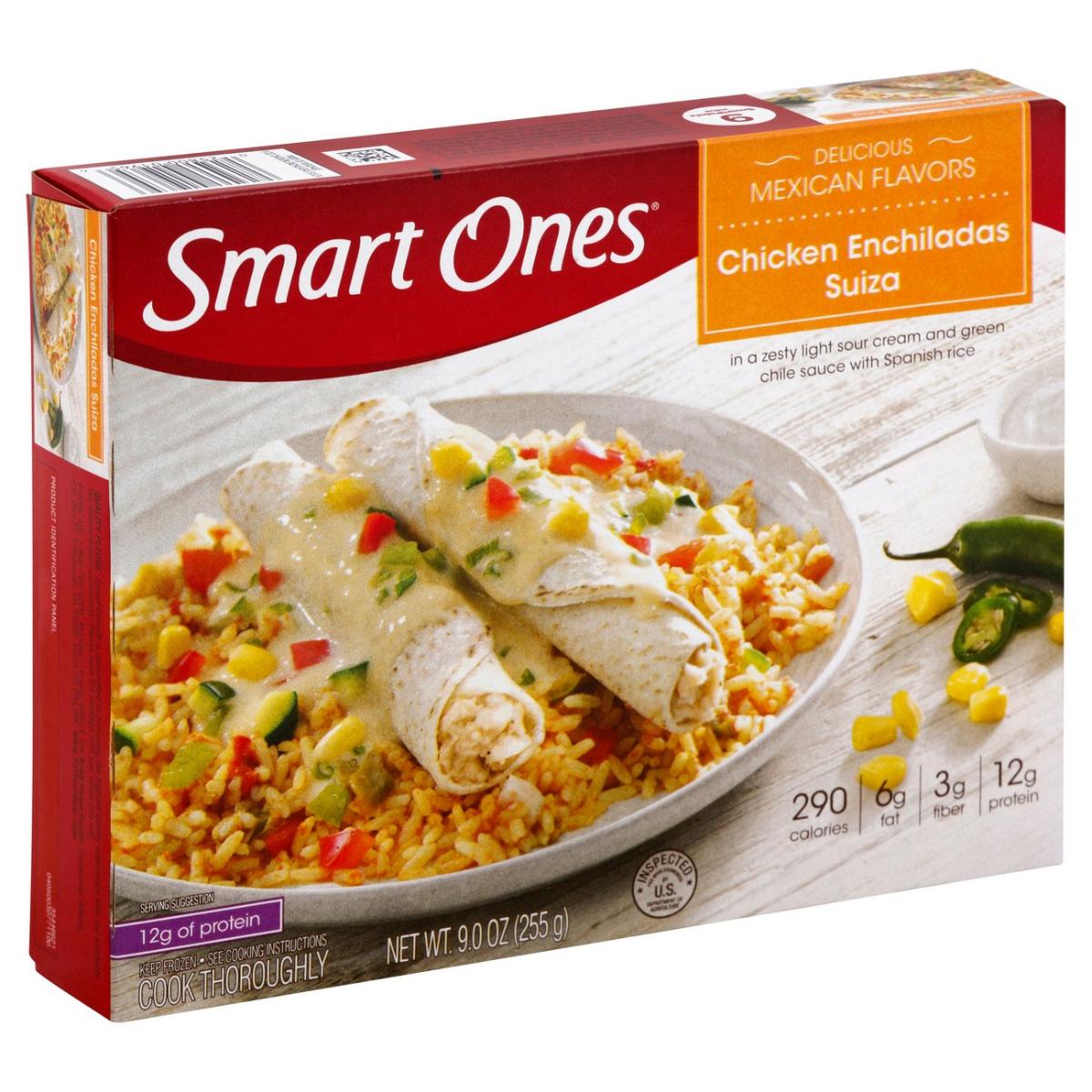- The manufacturer of Chicken Enchiladas Suiza in a Zesty Light Sour Cream and Green Chile Sauce with Spanish Rice is Smart Ones.