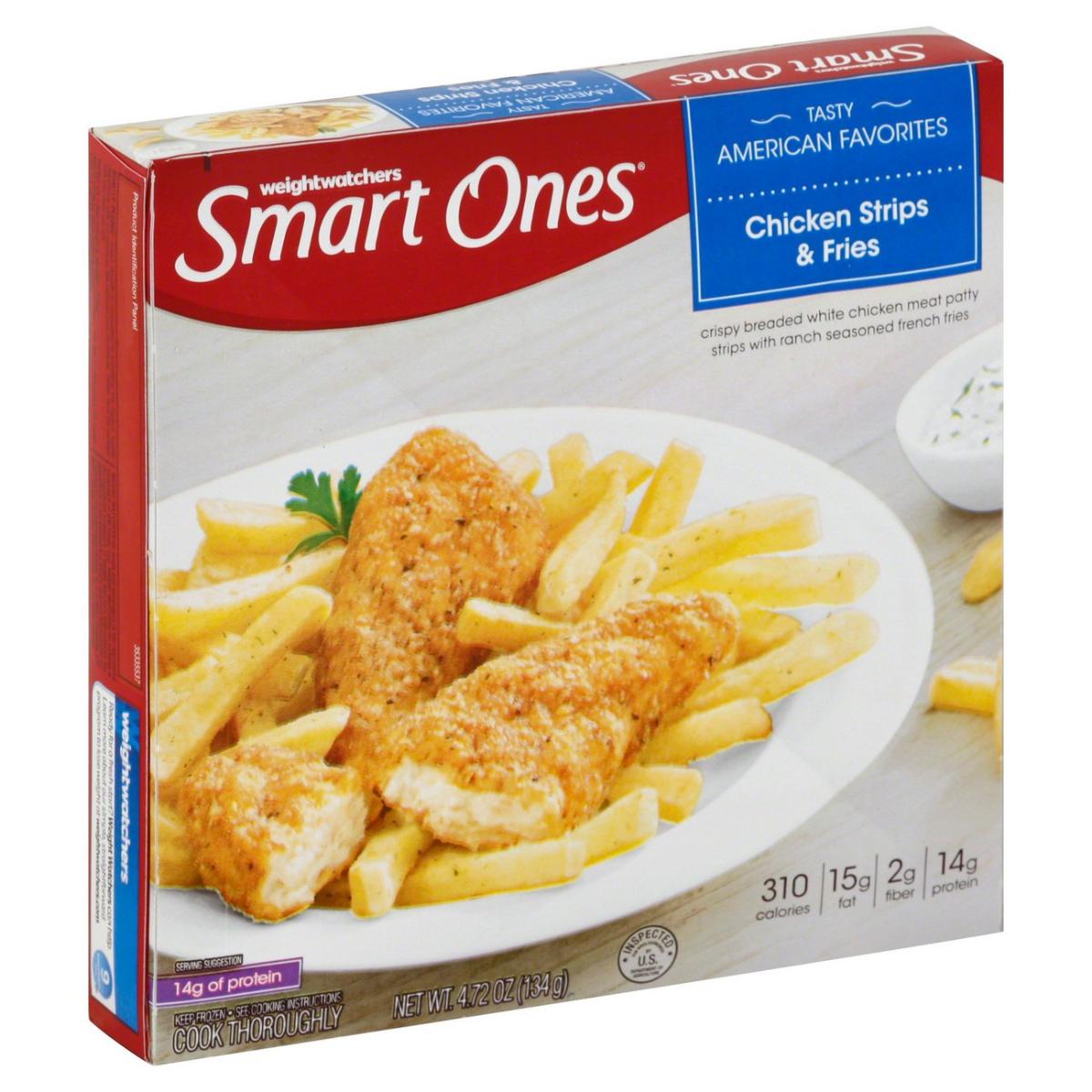 - The manufacturer of Chicken Strips & Fries Crispy Breaded White Chicken Meat Patty Strips with Ranch Seasoned French is Smart Ones.
