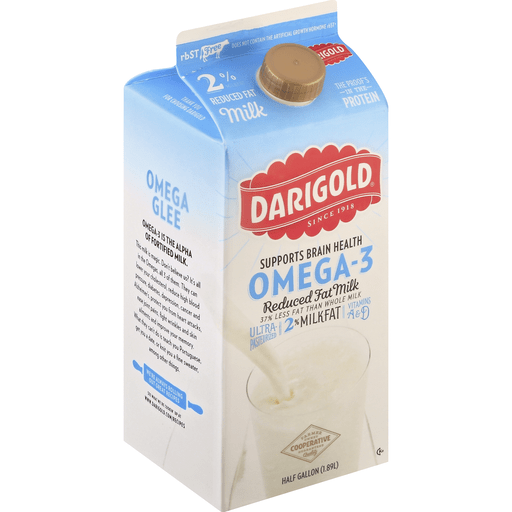 Supports brain health. 37% less fat than whole milk. Ultra-pasteurized. Vitamins A & D. Farmer owned cooperative guarantee quality. Since 1918. The proof's in the protein. rbST free. Does not contain the artificial growth hormone rbST (According to the FDA, no significant difference has been shown between milk derived from rbST treated and non-rbST treated cows). Protein for your routine in every glass! It's how we measure ourselves. Every scoop, cup, dip, tablespoon and dash. It's farmers owning the company. It's cows loving their farmers. It's rbST free milk. It's the thickest sour cream, the cookingest butter and the best cottage cheese in the world. It's you cooking the most tantalizing, mesmerizing, freakishly great tasting food in your life. It's farm meets delicious. It's Farmalicious. Thank you for choosing Darigold.