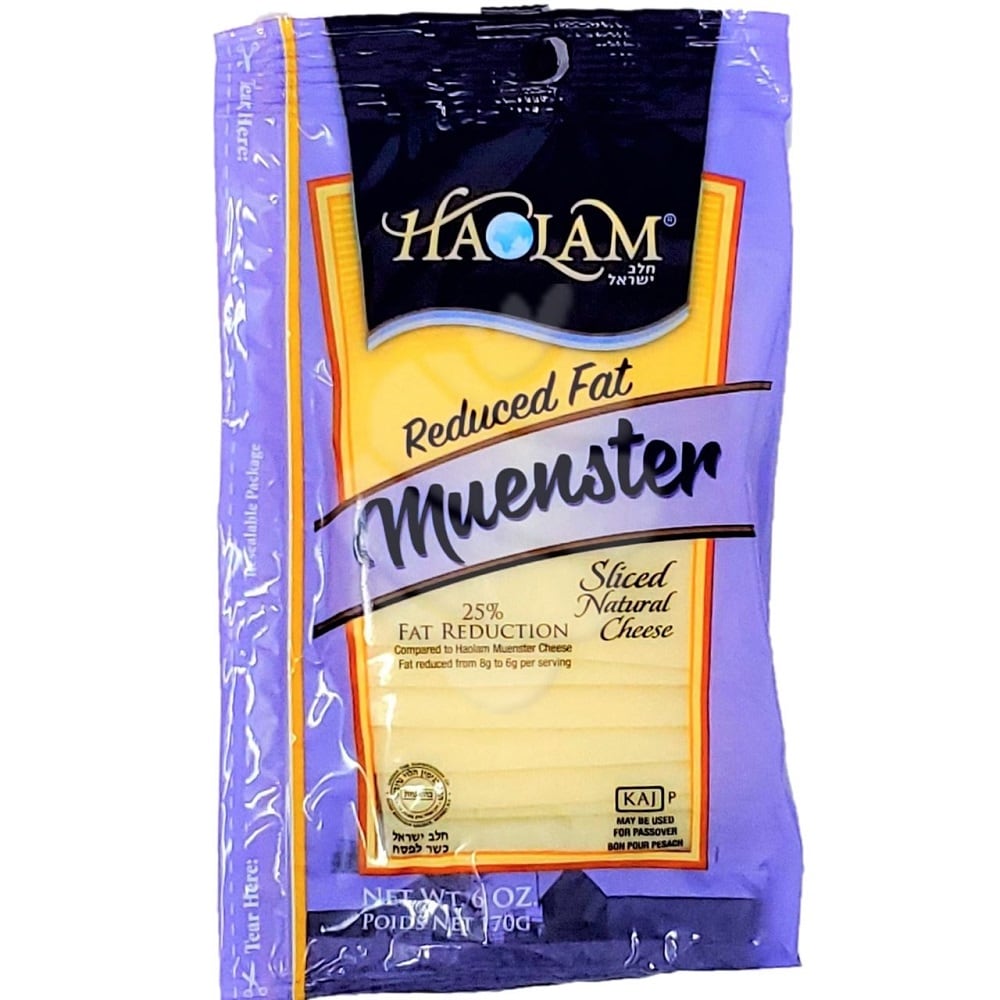 Reduced fat. 33% Fat reduction compared to USDA standard for muenster cheese, fat was reduced from 9 g to 6 g. Product of U.S.A. Certified Kosher by Khal Adath Jeshuran Rabbinic Organization. Dairy product.