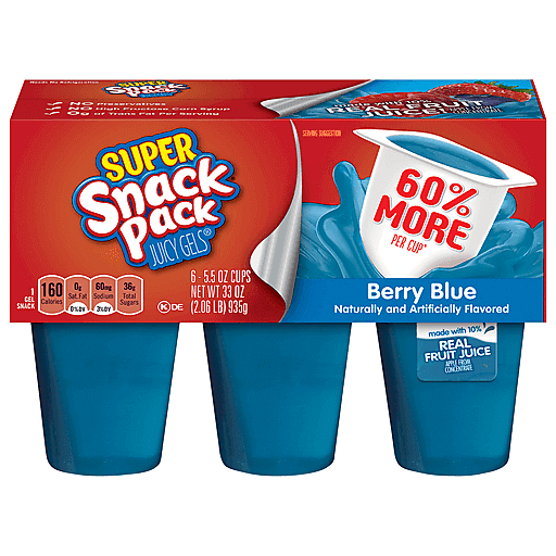 - The manufacturer of Berry Blue Juicy Gels, Berry Blue is Snack Pack.