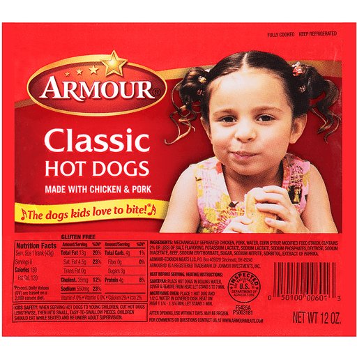 Everyone loves a good hot dog. While they're popular on kids' menus, they appeal to patrons of all ages as hot dogs are a top snack choice to satisfy hunger. Adding the delicious flavor of Armour by Smithfield Franks to your menu will keep families coming back for more any time of day. Armour by Smithfield All-Meat Franks use choice cuts of pork and beef trimmings provide traditional texture and a mild flavor that kids love.