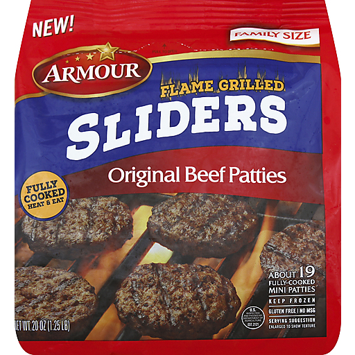- The manufacturer of Flame Grilled Original Beef Patties Sliders, Flame Grilled Original is Armour.