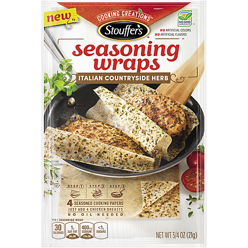 Stouffer's Seasoning Wraps take traditional heat-safe parchment paper to a whole new level. Our sheets are coated with real herbs and spices and help to expertly season, brown, and lock in juices and flavors all at once. These herbs and spices infuse flavor into your chicken while releasing a delicious aroma into your home. The products contain no artificial colors or flavors and have no GMO ingredients. As an added benefit, there is no need to add oil. The Seasoning Wraps keep skillets clean which minimizes clean up after cooking.