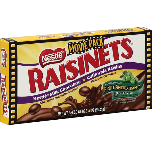 A deliciously smart choice. Natural source of fruit antioxidants. 30% Less fat than the leading chocolate brands. (8 g fat vs 11.4 g fat (average) in 45 g of the leading chocolate brands. Raisinets are a natural source of antioxidants, which help maintain body health. Enjoy!