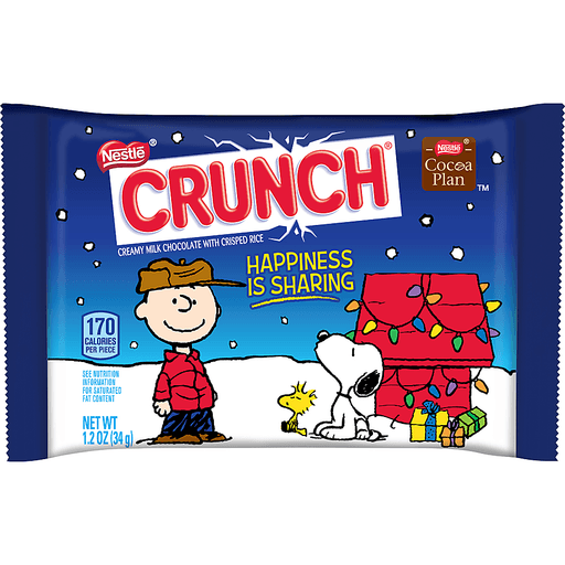 To be the kid in you, you gotta have a little fun everyday. Have fun when you munch on some NESTLE CRUNCH, the perfect combination of milk chocolate and crisped rice. Nestle Crunch Sharable Medallions โ Each NESTLE CRUNCH medallion is beautifully molded, featuring Charlie Brown. A simple but delicious combination of creamy milk chocolate with crisped rice. No artificial flavors or colors. Easily break and share this holiday treat with a friend! Great stocking stuffer! Nestle Crunch is part of the Nestle Cocoa Plan which works to help improve the lives of cocoa farmers and the quality of their products.