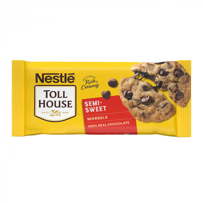 Nestle Toll House Semi Sweet Chocolate Chips are a great way to add deliciously rich and creamy semi sweet chocolate morsels to your favorite baking recipes. These semi sweet chocolate chips are easy to toss into all kinds of dessert mixes and batters. Include these semi sweet morsels in your recipes for the iconic taste that Nestle Toll House is known for. These baking chocolate chips are gluten free and contain no artificial flavors colors or preservatives. These Nestle Toll House morsels are made with 100% real chocolate for a delicious treat your entire family will love. Use these baking chips as an iconic addition to Nestle Toll House cookies brownies and pancakes or melt them to use in a chocolate fudge recipe. They are also delicious to snack on or to use as a dessert topping. Contains 1 cup of semi sweet morsels per bag.