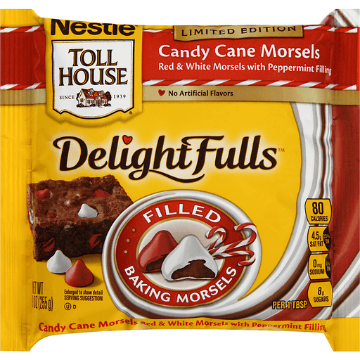 - The manufacturer of Candy Cane Morsels Red & White Morsels with Peppermint Filling, Candy Cane with Peppermint is Nestle Toll House.