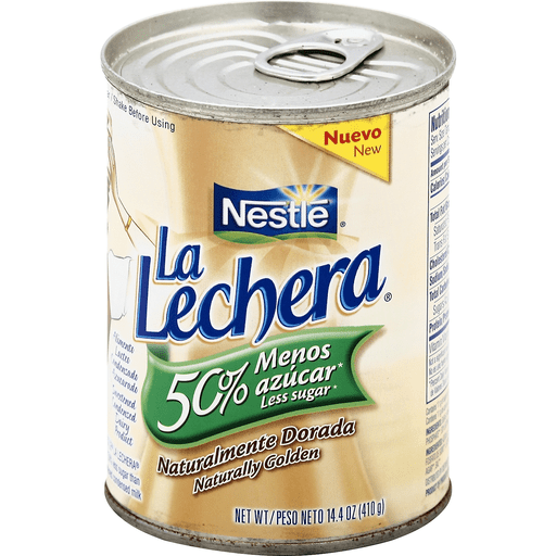 New. 50% less sugar (50% less sugar than Nestle La Lechera Sweetened Condensed Milk). LaLechera.com. Nestle since 1866.