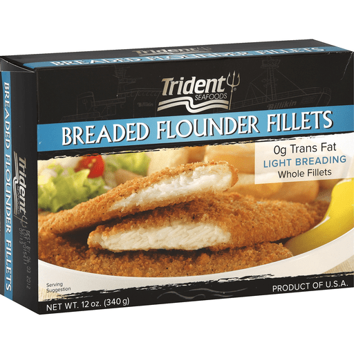 - The manufacturer of Breaded Pacific Flounder, Breaded is Trident.