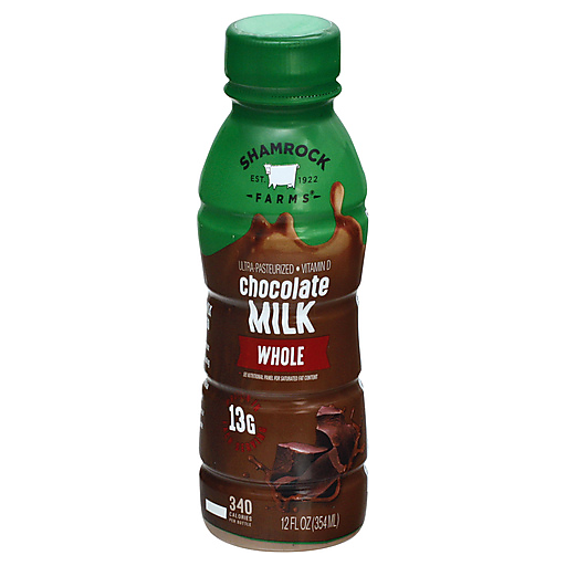 13 g protein in each serving. 340 calories per bottle. Gluten free. Excellent source of protein & calcium. Vitamin D. See nutritional panel for saturated fat content. Est. 1922. New look. Same great taste! Great tasting milk wherever you go. Everything we make at Shamrock Farms starts with pure, great tasting milk from our family of local farms. And we never add the artificial growth hormone rBST (No significant difference has been shown between milk derived from rBST-treated and non-rBST treated cows), ever. Our hands-on approach delivers a delicious difference you can taste. So pure. So fresh. So Shamrock. We pledge not to treat our cows with the growth hormone rBST (No significant difference has been shown between milk derived from rBST-treated and non-rBST treated cows). Ultra-pasteurized. Grade A. shamrockfarms.net. (at)shamrockfarms Pinterest. Facebook. Twitter. Instagram. Questions or comments? Call 1-888-447-6943 or visit shamrockfarms.net.