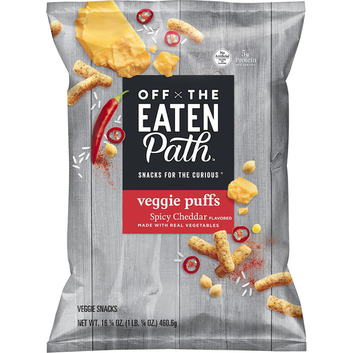 - The manufacturer of Spicy Cheddar Veggie Puffs, Spicy Cheddar is Off The Eaten Path.