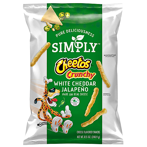 - The product category for White Cheddar Jalapeno Crunchy Cheese Flavored Snacks, White Cheddar Jalapeno is Chips.