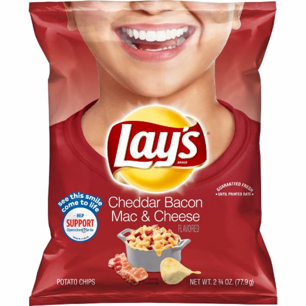 - The manufacturer of Cheddar Bacon Mac & Cheese Potato Chips, Cheddar Bacon Mac & Cheese is Lays.