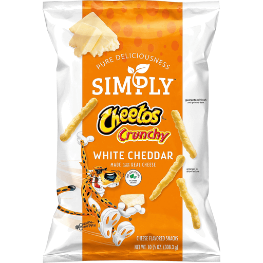 - The product category for White Cheddar Crunchy Cheese Flavored Snacks, White Cheddar is Snack Foods.