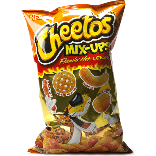 - The product category for Cheetos, Mix-Ups, Flamin Hot & Cheesy Mix, Flamin Hot & Cheesy Mix is Chips.