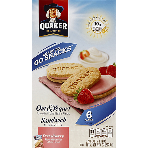 - The manufacturer of Quaker, Sandwich Biscuits, Strawberry, Oat & Yogurt, Strawberry, Oat & Yogurt is Quaker.