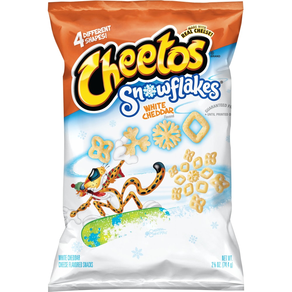 - The product category for White Cheddar Cheese Flavored Snacks, White Cheddar is Chips.