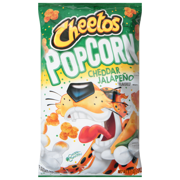 CHEETOS Popcorn brings the delicious taste of CHEETOS to a classic snacking favorite - popcorn! CHEETOS Popcorn delivers all of the rich, smooth, cheesy flavor you know and love from classic CHEETOS with a taste of spicy jalapeño in this DANGEROUSLY CHEESY snack. Ready to go right out of the bag, it’s popcorn with an added boost of cheesy mischievous flavorful fun with just the right amount of heat.