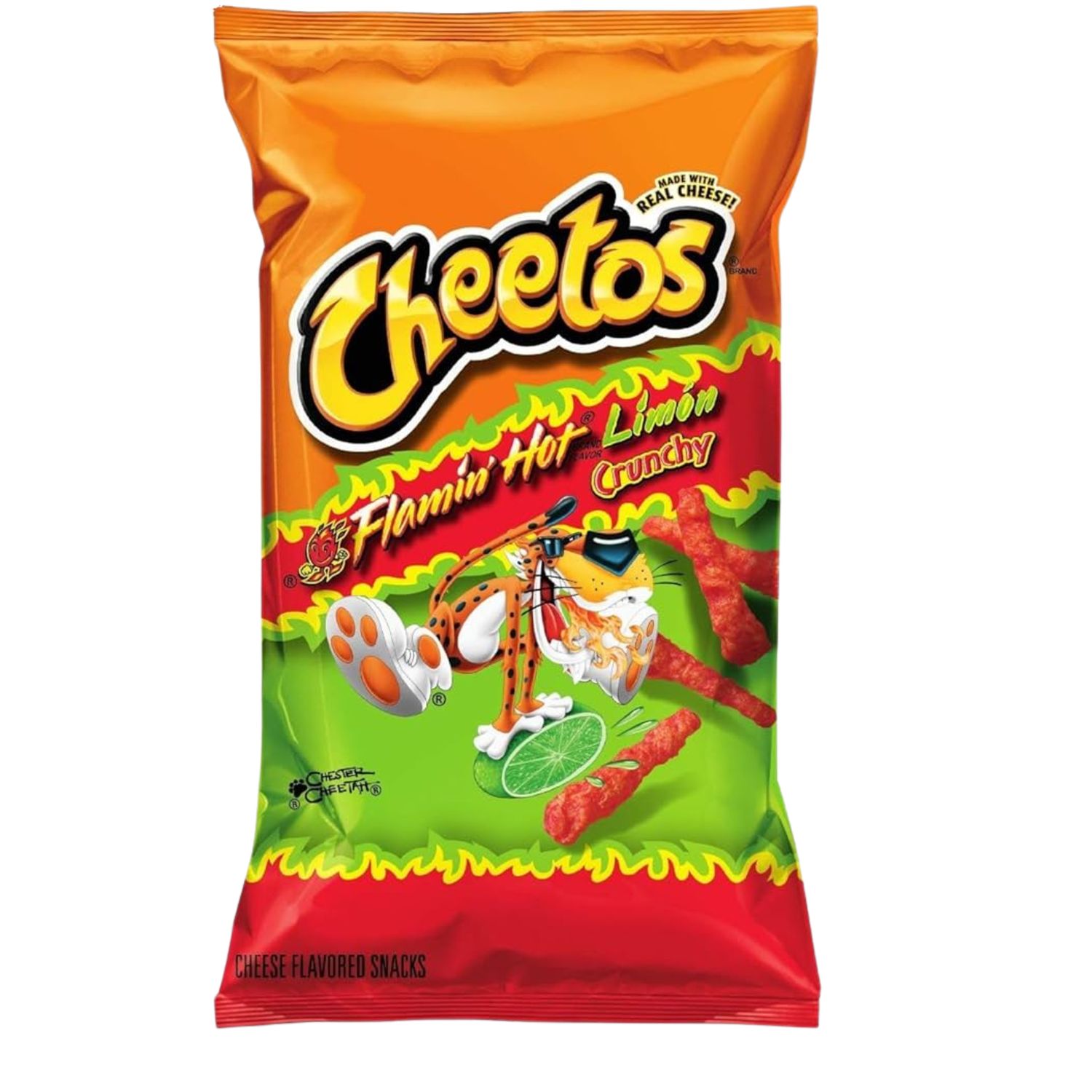 Hot, spicy flavor that leaves a zesty zing on your tongue. CHEETOS ® Crunchy FLAMIN’ HOT ® Limón Cheese Flavored Snacks are full of flavor and made with real cheese.