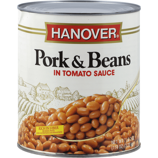 - The manufacturer of Pork & Beans in Tomato Sauce is Hanover.