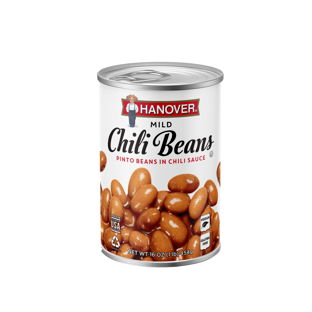 Pinto beans in chili sauce. Vegan. Gluten free. www.hanoverfoods.com. Facebook. Pinterest. Instagram. (hashtag)HanoverHappy. When corresponding, please include code information from can end. Please recycle. Packed in the USA.