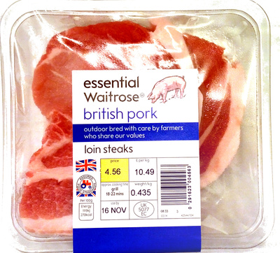 - The manufacturer of British Pork Loin Steaks is Waitrose.