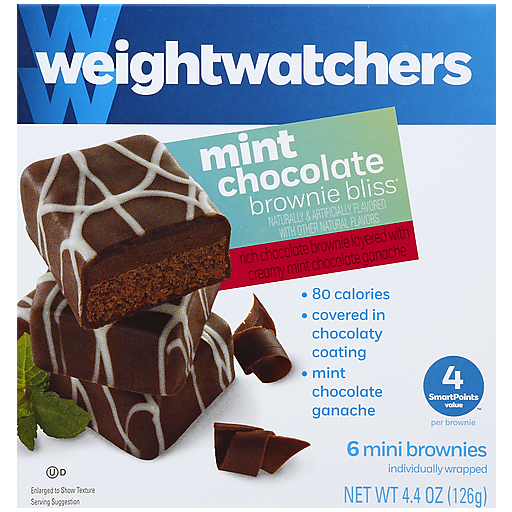 Rich chocolate brownie layered with creamy mint chocolate ganache. 80 calories. Covered in chocolaty coating. Mint chocolate ganache. 4 SmartPoints value. Individually wrapped. It's a decadent brownie layered with mint chocolate ganache. And, yes, it tastes as good as it looks. New Weight Watchers SmartPoints plan. A simple, smart approach to weight loss. Introducing a new program that goes beyond calories to help you make smarter choices. Learn more at weightwatchers.com. This product was prepared to fit the Weight Watchers program and is useful for weight control when used strictly in accordance with the Weight Watchers food plans. If you have any questions or concerns about this product, please contact Dawn Food Products, Inc., Consumer Affairs, 3333 Sargent Rd., Jackson, MI 49201 or call 1-877-519-2824. Visit weightwatchers.com/sweetbakedgoods for more information. Try our other great-tasting varieties! Savor them and learn more (at) weightwatchers.com/sweetbakedgoods.