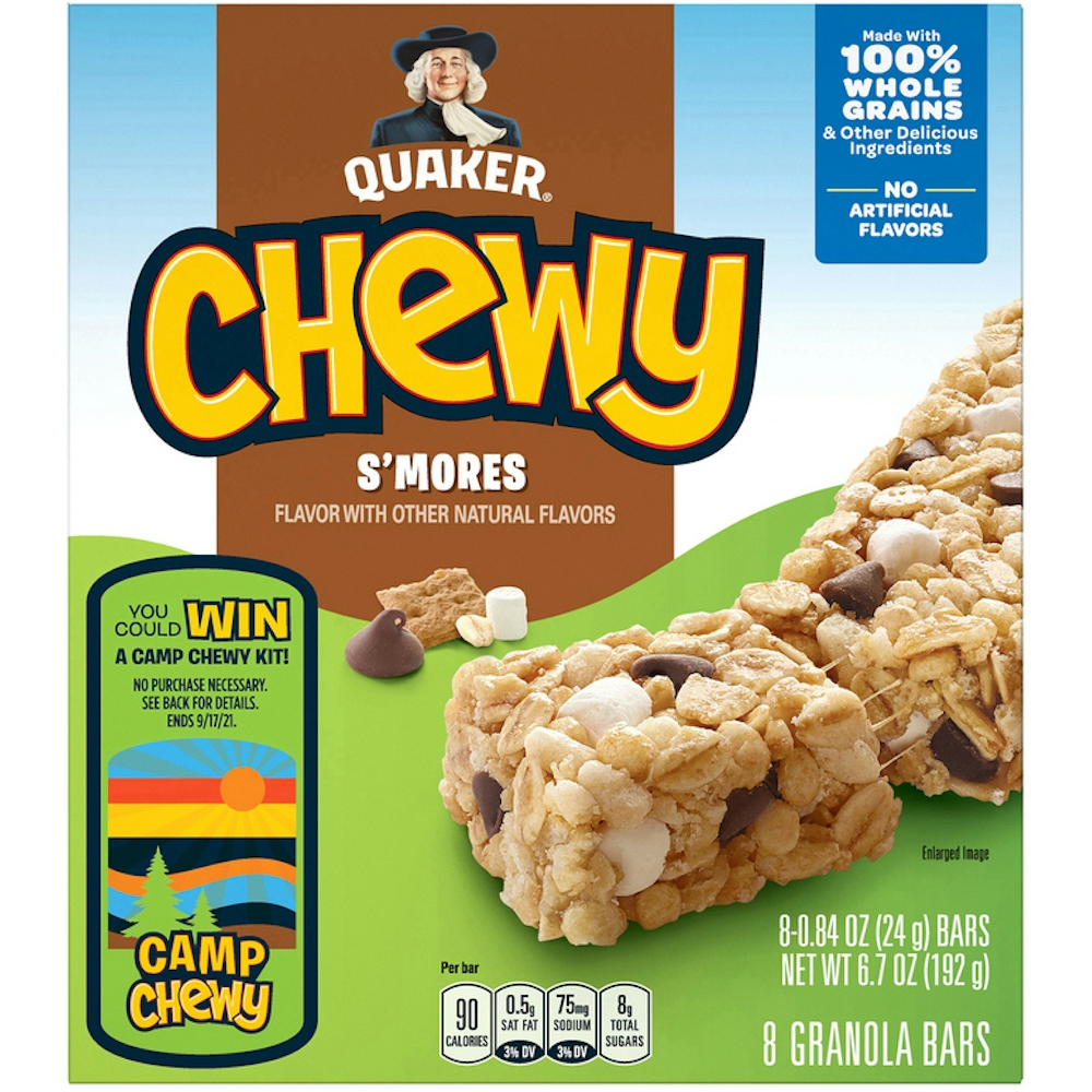 Satisfy your snack cravings and help fuel your day with Quaker Chewy S'mores Granola Bars. With 8 grams of whole grains and the family-favorite flavors of chocolate and gooey marshmallow, these bars are a great-tasting and wholesome snack. These granola bars are made without high-fructose corn syrup and each box comes with eight individually wrapped bars.