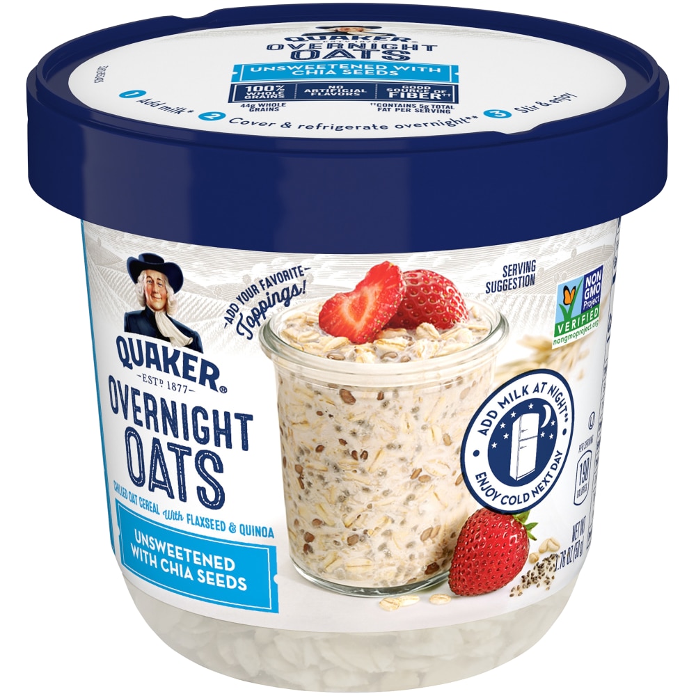 - The manufacturer of Unsweetened with Chia Seeds Chilled Oat Cereal with Flaxseed & Quinoa Overnight Oats is Quaker.
