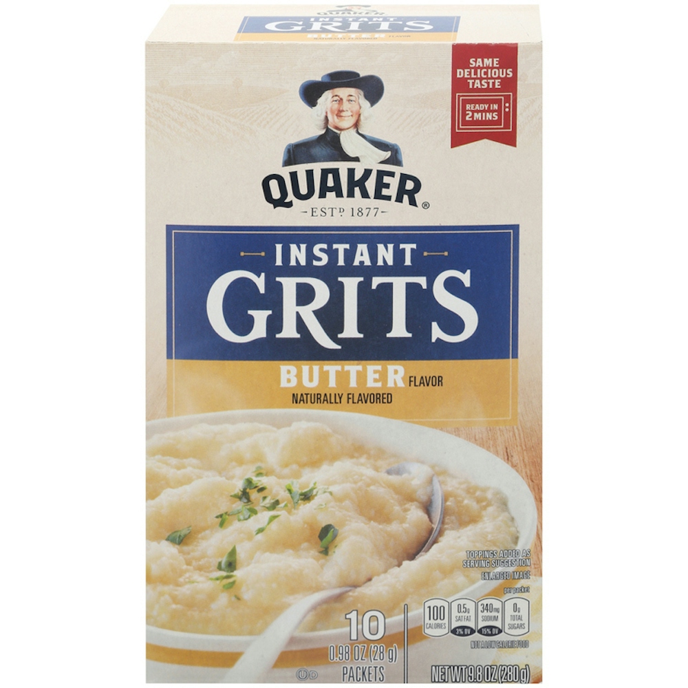Serve a side dish or a quick bowl of hot, buttery flavored grits with Quaker Butter Flavor Instant Grits. Ideal for busy schedules, these grits are ready in minutes, so you can enjoy a hot bowl any time. With single-serving packets and simple preparation, these grits are also a convenient snack for the office or travel. Each box includes 10 single-serving packets.