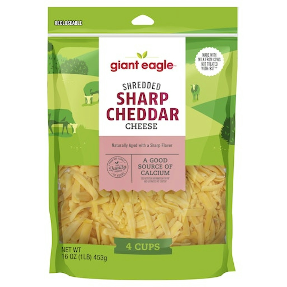 - The manufacturer of Sharp Cheddar Shredded Cheese, Sharp Cheddar is Giant Eagle.