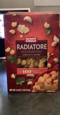 - The manufacturer of Enriched Macaroni Product, Radiatore is Giant Eagle.