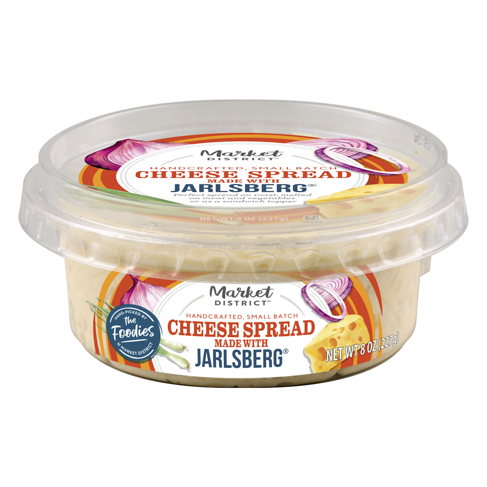 - The manufacturer of Jarlsberg Cheese Spread is Market District.