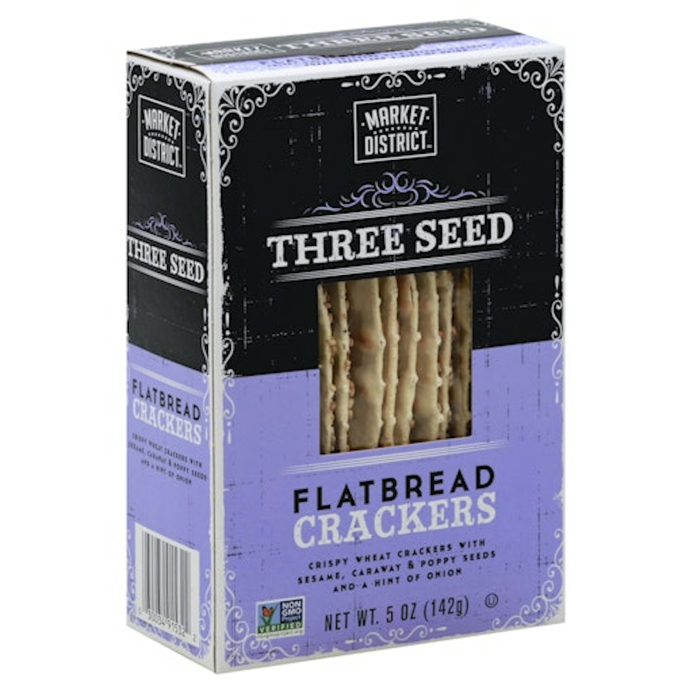 - The manufacturer of Flatbread Crackers, Three Seed is Market District.