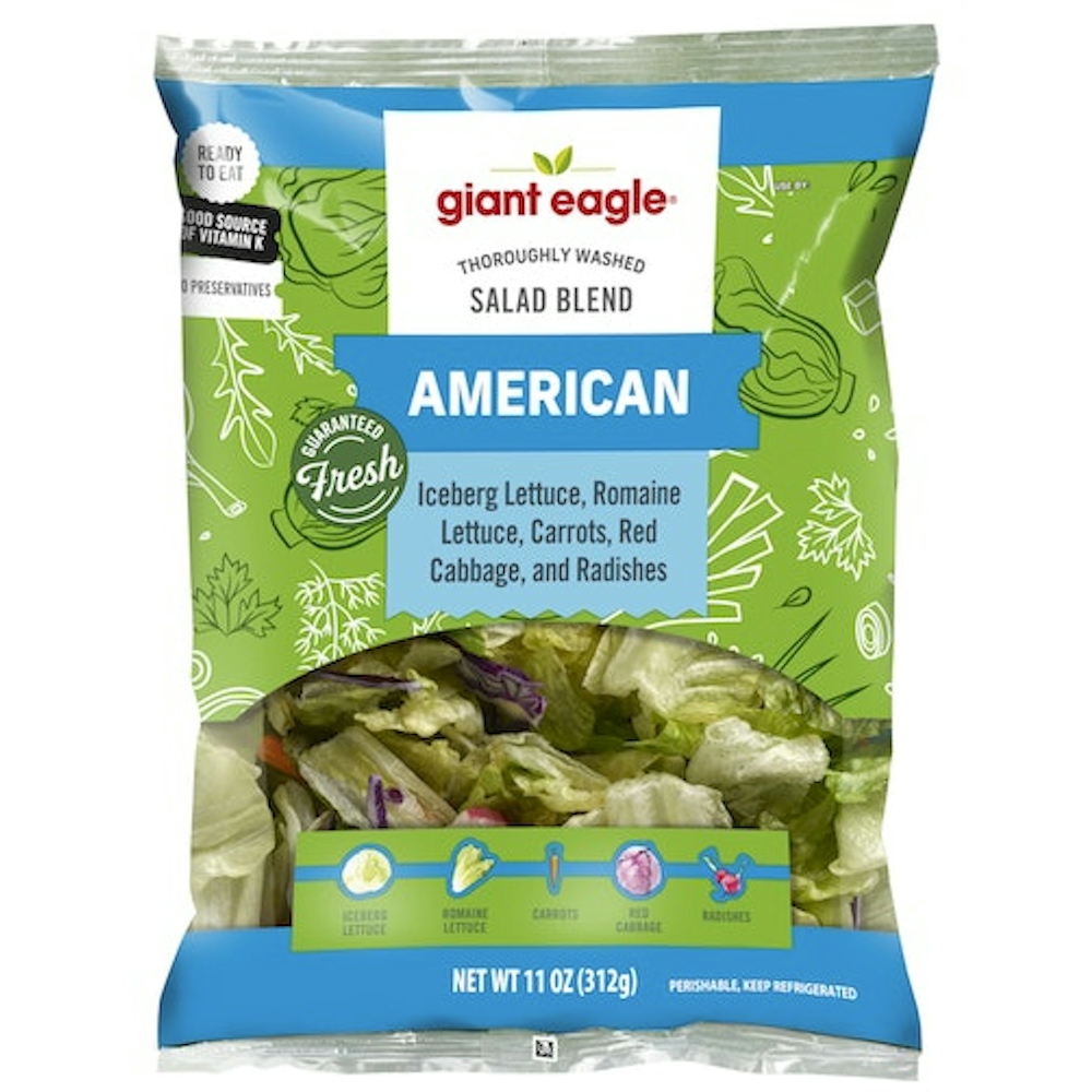 - The manufacturer of American Iceberg Lettuce, Romaine Lettuce, Carrots, Red Cabbage and Radishes Salad, American is Giant Eagle.