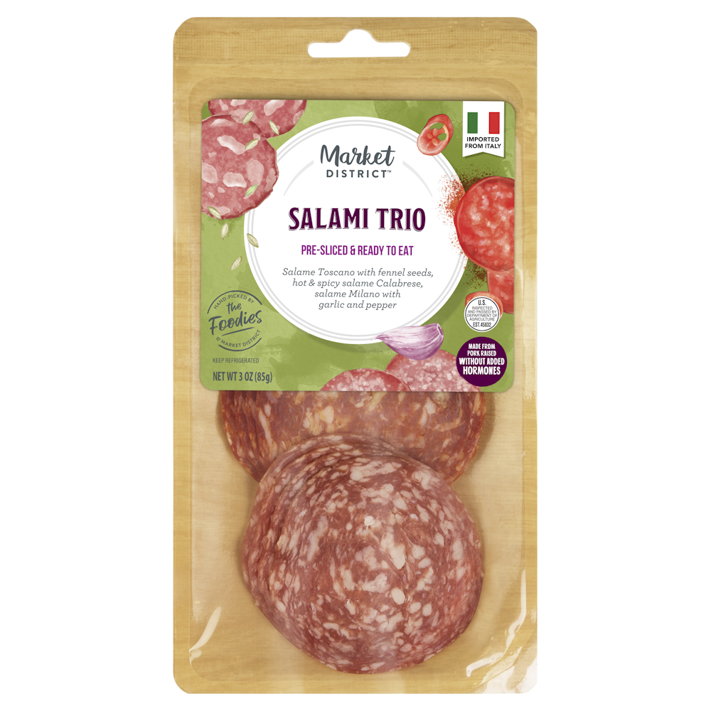 Salame Milano (Pork, Salt, Dextrose, Spices, Sodium Ascorbate, Flavor, Sodium Nitrite, Potassium Nitrate, Lactic Acid Starter Culture), Salame Calabrese (Pork, Salt, Hot Chili Pepper, Chili Pepper, Spices, Dextrose, Sodium Ascorbate, Sodium Nitrite, Potassium Nitrate, Lactic Acid Starter Culture, Garlic Powder), Salame Toscano (Pork, Salt, Fennel Seeds, Dextrose, Spices, Sodium Ascorbate, Sodium Nitrite, Potassium Nitrate, Lactic Acid Starter Culture, Garlic Powder).