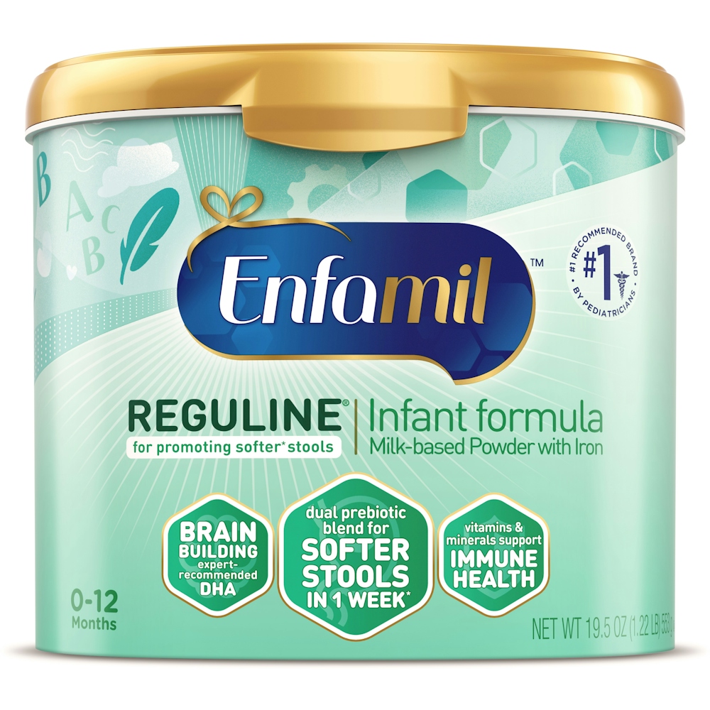 Enfamil Reguline Infant Formula can be used everyday to provide complete nutrition for your little one through 12 months of age while featuring a blend of prebiotics to promote soft stools and easy-to-digest proteins. When your baby is struggling to poop, no one is happy. Help ease those hard-to-go scenarios & make her more comfortable with Enfamil Reguline.