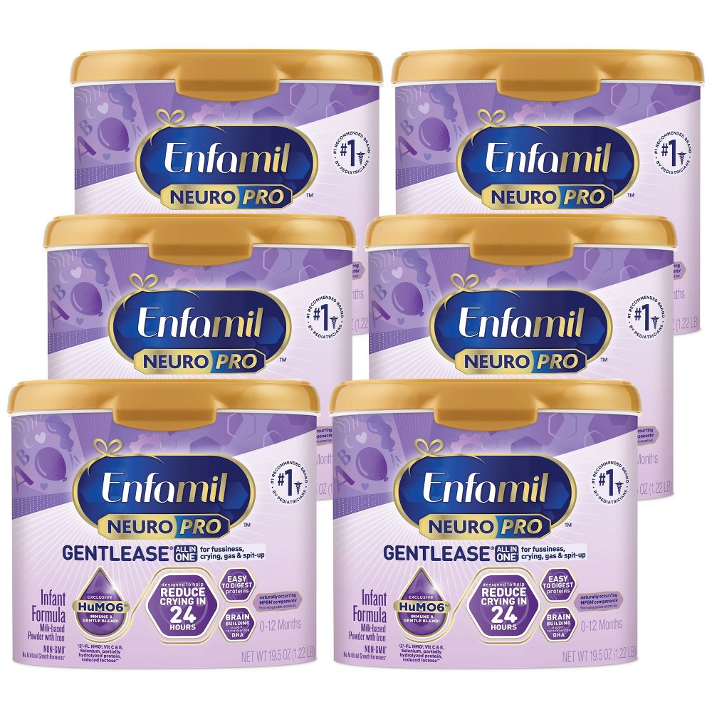 Enfamil NeuroPro Gentlease Baby Formula Powder is a 20 Cal/fl oz milk-based, iron-fortified, routine infant formula powder for infants 0โ12 months, designed to help reduce fussiness, gas and crying in 24 hours. This gentle baby formula milk powder has a fat-protein blend of MFGM and DHA Omega 3 previously found only in breast milk*. Infant formula that has MFGM and Omega 3 DHA has been clinically shown to foster cognitive development and immune support, and be a safe and well-tolerated source of infant nutrition (1).