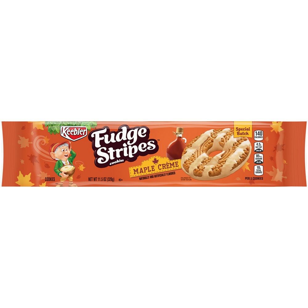 We elves love to bake up special-edition batches to celebrate sweet, seasonal flavors. So, with a little Elfin Magic™ and help from our trusty magic oven, we created these Keebler® Fudge Stripes™ Maple Crème cookies - crispy, golden cookies with the delicious taste of molasses, drizzled with creamy, maple flavored frosting. But gobble 'em up soon because these irresistible treats will be gone before you know it.