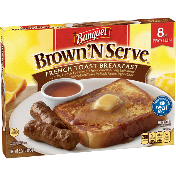 - The manufacturer of French Toast Breakfast Pork and Turkey & a Maple Flavored Dipping Sauce Fully Cooked Sausage Links is Banquet.