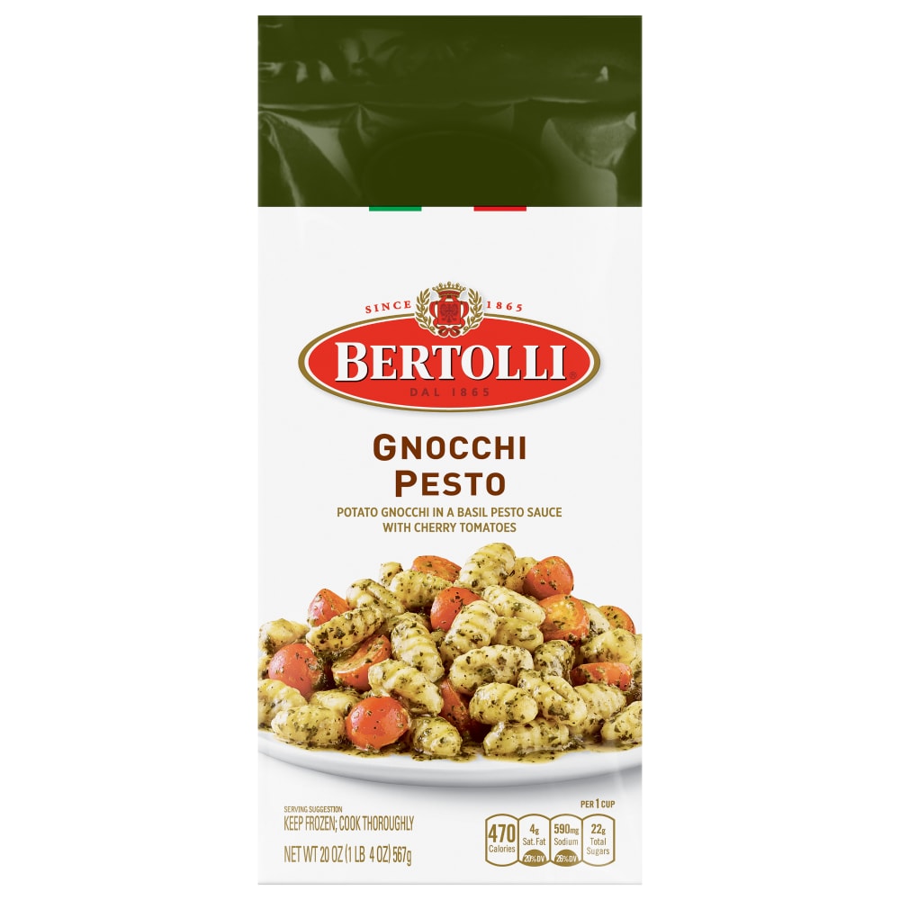 - The manufacturer of Gnocchi Pesto Potato Gnocchi in a Basil Pesto Sauce with Cherry Tomatoes, Gnocchi Pesto is Bertolli.